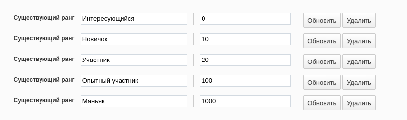 А можно поменять эти стандартные: Участник, Новичек, Хер с горы