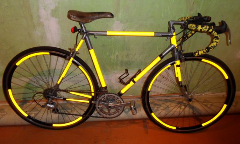 А ещё для заметности мой "Крокодил" (его у меня украли в сентябре...в лесу!) был оклеен световозвращающим жёлтым "ОРАКАЛом" — тем что на знаке "главная дорога" — велосипед был заметен даже слабовидящим. Собираемый сейчас "Крокодил2" будет так же оклеен этим же материалом.