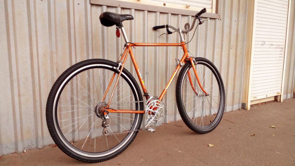 630-е обода очень идут "мутному" 58-го роста, диаметр колёс вышел даже меньше предыдущих, так что я бы и 635-е поставил, не будь они у нас крайней редкостью. Можно сказать почти спонтанно вышло именно то, чего я ожидал от подобных колёс для сити-байка. Резина конечно не самая мягкая, пятая точка пока протестует, возьмём поправку на начало сезона