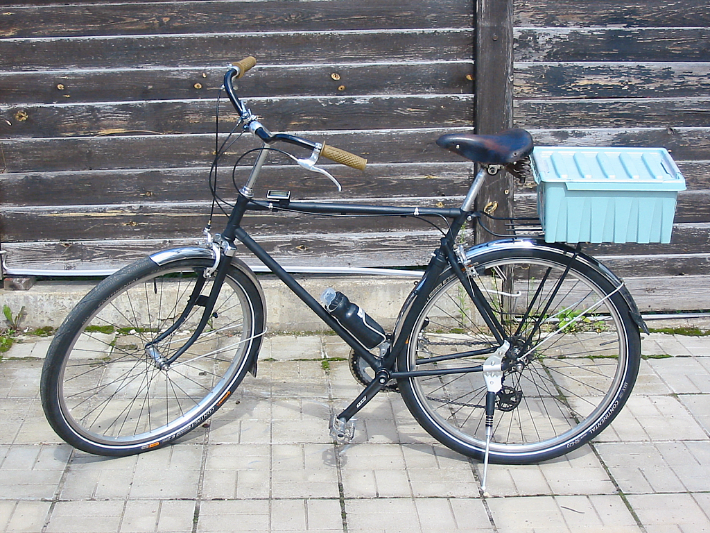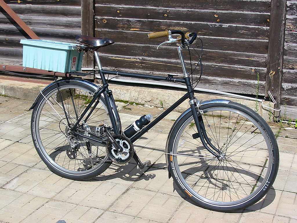 Франк переехал на туристовские колеса, вследствие чего ему достались 4 креста сзади, первая передача 28Т и опорный подшипник в трещотку. Не знаю что из этого больше повлияло, но в результате агрегат стал полноценным горкозаезжальцем, несмотря на ограничения классической посадки. Вчера первый раз в жизни заехал в злую горку в седле. Колени, правда это дело не одобрили: суставы плохо переносят большие нагрузки на больших углах сгиба.