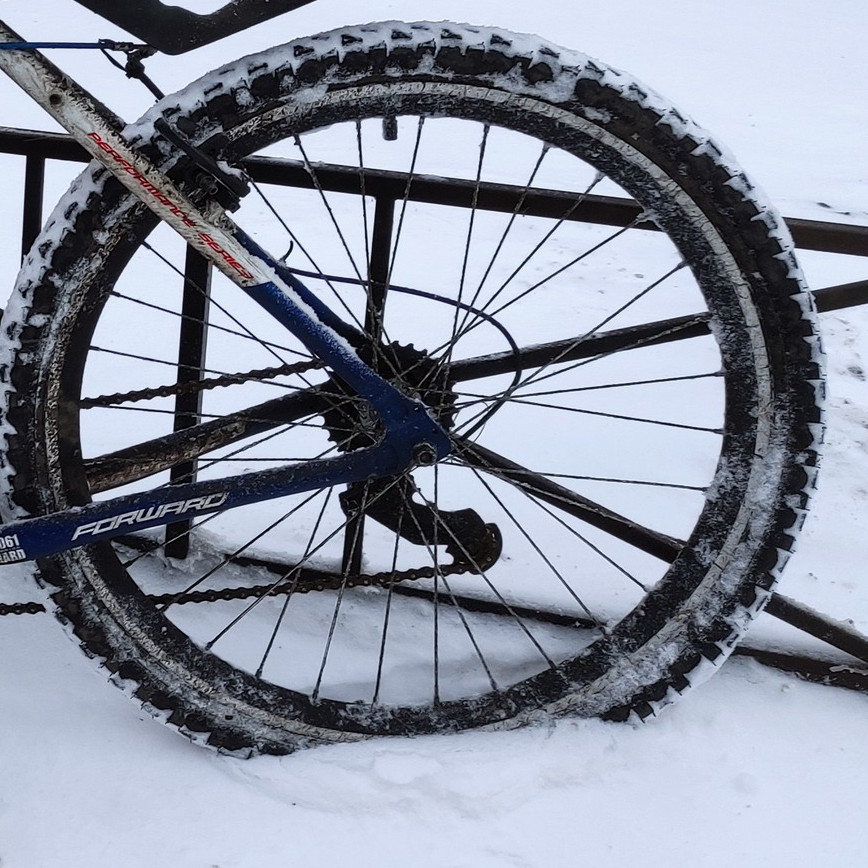 Внезапно наступила зима. Два дня поездок на соседнюю площадку с примотанными к раме железками килограммов на 20 (варю в одном месте, монтирую в другом), первый -10 с ветром по льду и асфальту, а на второй потеплело и насыпало по щиколотку. Это-то мне и надо было.