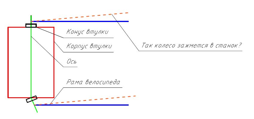 Вопрос в том, как это всё зажмется в станок. Учитывая, что перья задней вилки рамы велосипеда вовсе не параллельны, то да, в раму зажмется без проблем, при этом колесо станет криво. Да, Вы правы, такой случай возможен, извиняюсь.