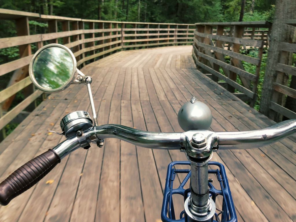 В пяти минутах езды от станции начинается велотрасса по берегу канала. В августовскую субботу тьма физкультурников на различных велосипедах.