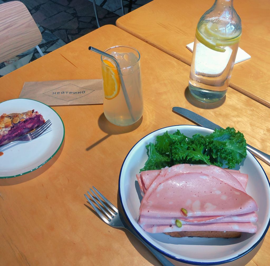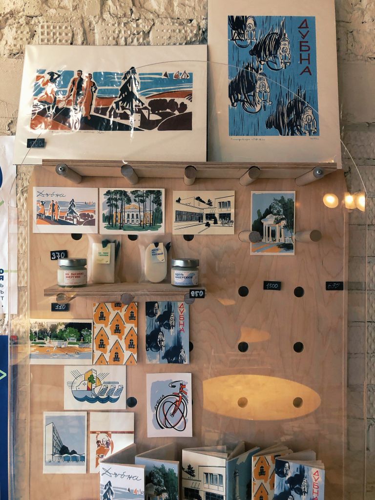 На этот раз решил, наслушавшись от товарищей о красоте модернистской и сталинской Дубны, переночевать здесь. Но сначала — заслуженный полдник в кафе «Нейтрино». Здесь же продают симпатичные сувениры наукограда. Здорово, что модернистское наследие ценят и переосмысляют.