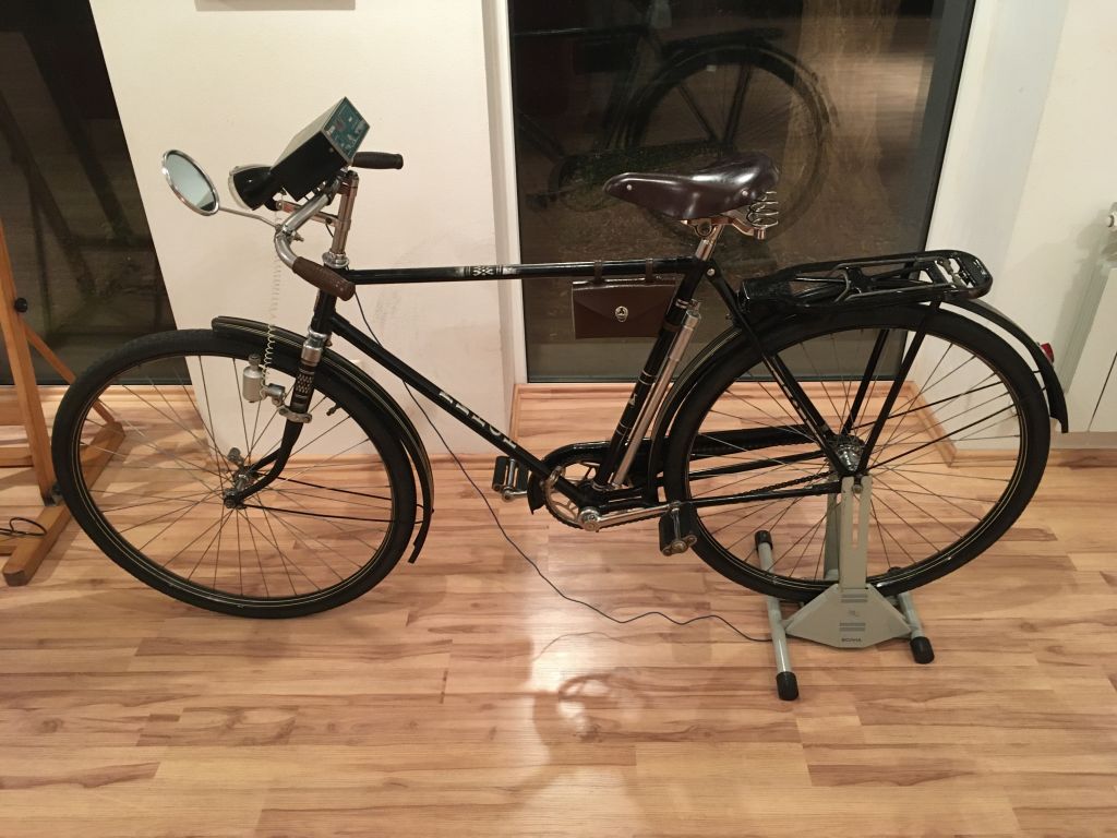 Гремучая смесь белорусского качества и молдавских технологий: установил В-126 на подаренный товарищем тренажёр «Волна» 80-х годов. Выглядит одиозно, конечно, но шоссейный или легкодорожный велосипед из-за наличия переключателя сюда не установить… Буду наматывать километры теперь…