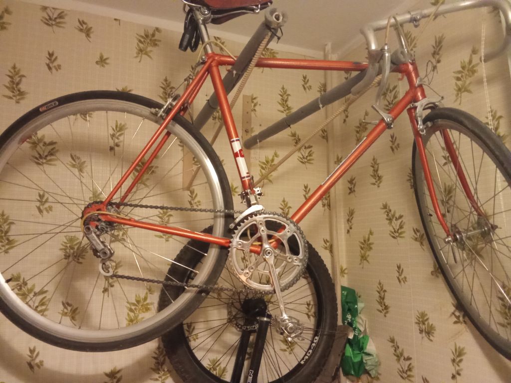 Попозже расскажу как я его нашел и ход работ. Скажу сразу: не обращайте внимание на седло, это временно. Да, колодки установлены не правильно, буду перставлять, есть от чемпиона с усами вперед, а эти назад. Шильдик скоро будет, красится с зимы, никак не закончу.