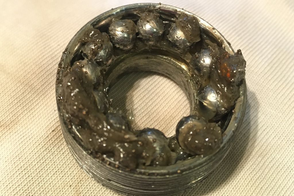 P.S. После пескоструя рама полна песка. Промывка "Керхером" ситуацию не спасает. Поэтому трубы, выходящие в каретку заткнуты тряпками и сделана вставка в кареточный стакан из пластиковой бутылки. Понимаю, что решение, мягко говоря "так себе", но другого не нашел пока. Без него получается вот такая кака: