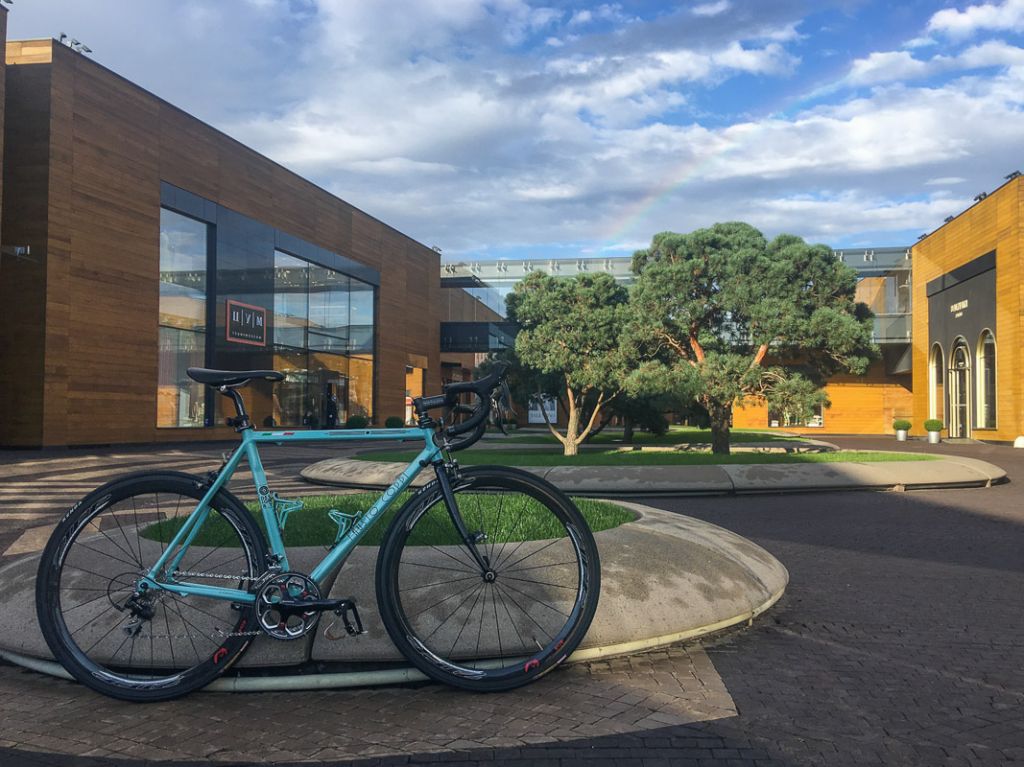 Внешний вид полностью современен, сочетания бирюзового и черного — классика шоссейных расцветок. Велосипед сделан вручную, частный проект, собранный под своего владельца, но в результате оказался в руках коллеги Сергея. И как всегда у Сергея, уделено большое внимание деталям и тщательной, аккуратной сборке.