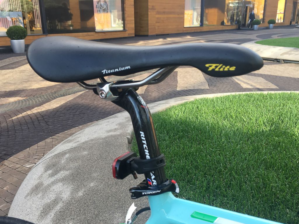 Велосипед удобный, седло — на титановых полозьях, Selle Italia Flite, профессиональное эпохи 90-х — начала нулевых, руль современного типа, с посадкой и опорой рук на "слоны", интегрированные с тормозными ручками переключатели — оценил удобство переключения, кассета 9 скоростей 12 — 25, из них звезды 12-13 это сугубо специфичные для разгона с горы или для спринтерского финиша, на прямой же я не в состоянии раскрутить их без того, чтобы ноги не начали "забиваться".