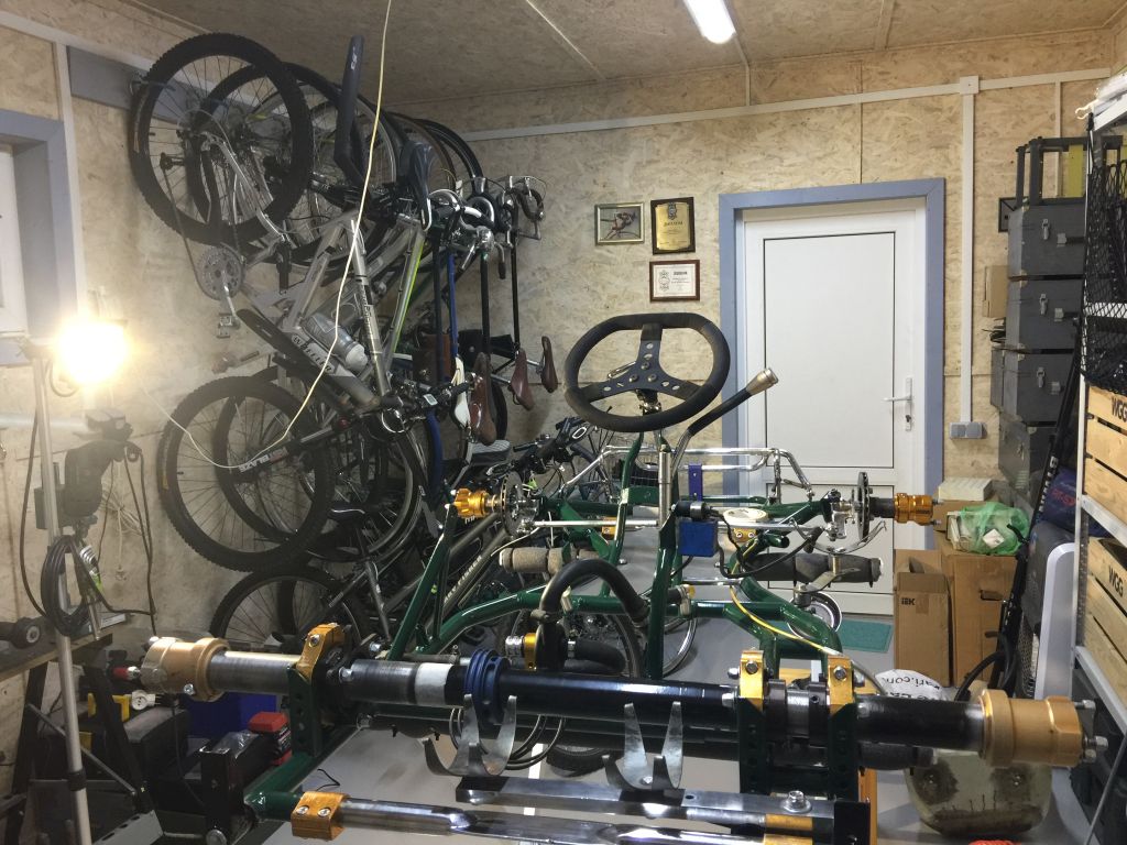 Хотя есть и общее у карта и велосипеда, цепная передача, стальная рама, тросики и рубашки, немного пластика, алюминий и сталь, ну и технологии восстановления.
