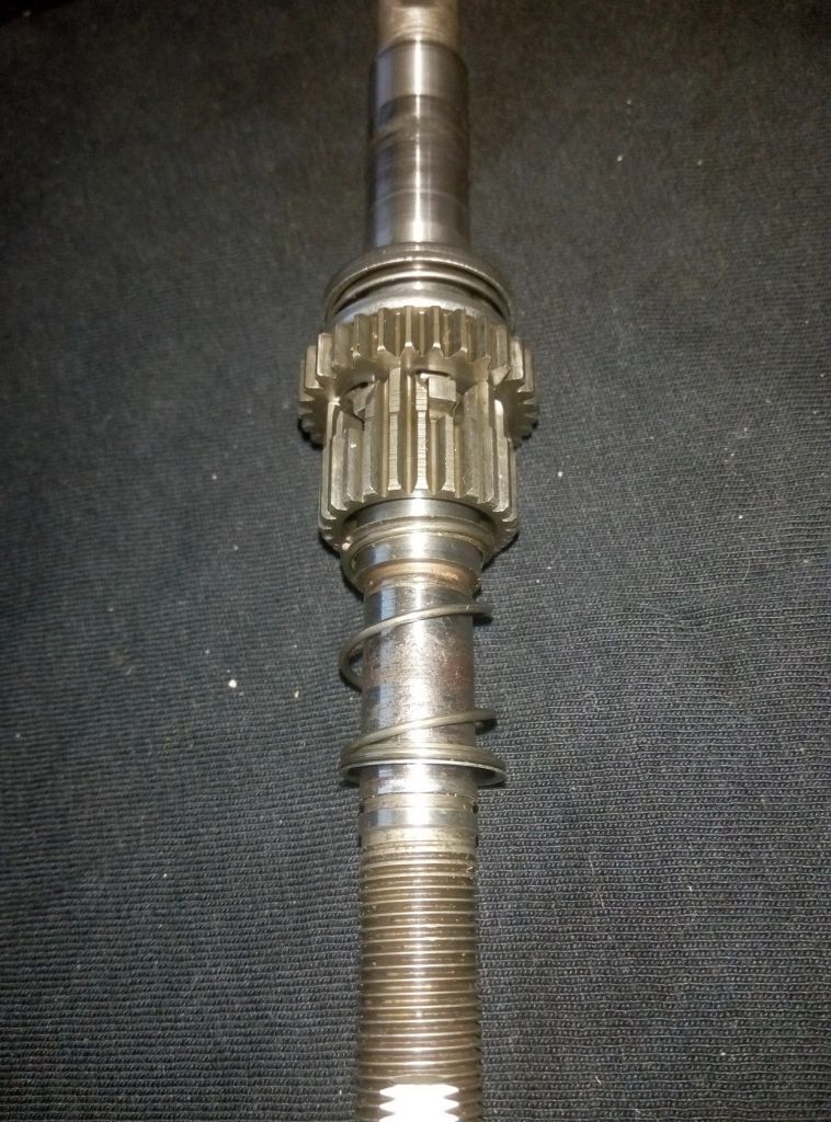 Одеваем первую солнечную шестерню, сразу за ней короноподобную вторую. После чего пружину. У этой пружины на концах по два кольца. Следом шайбу.