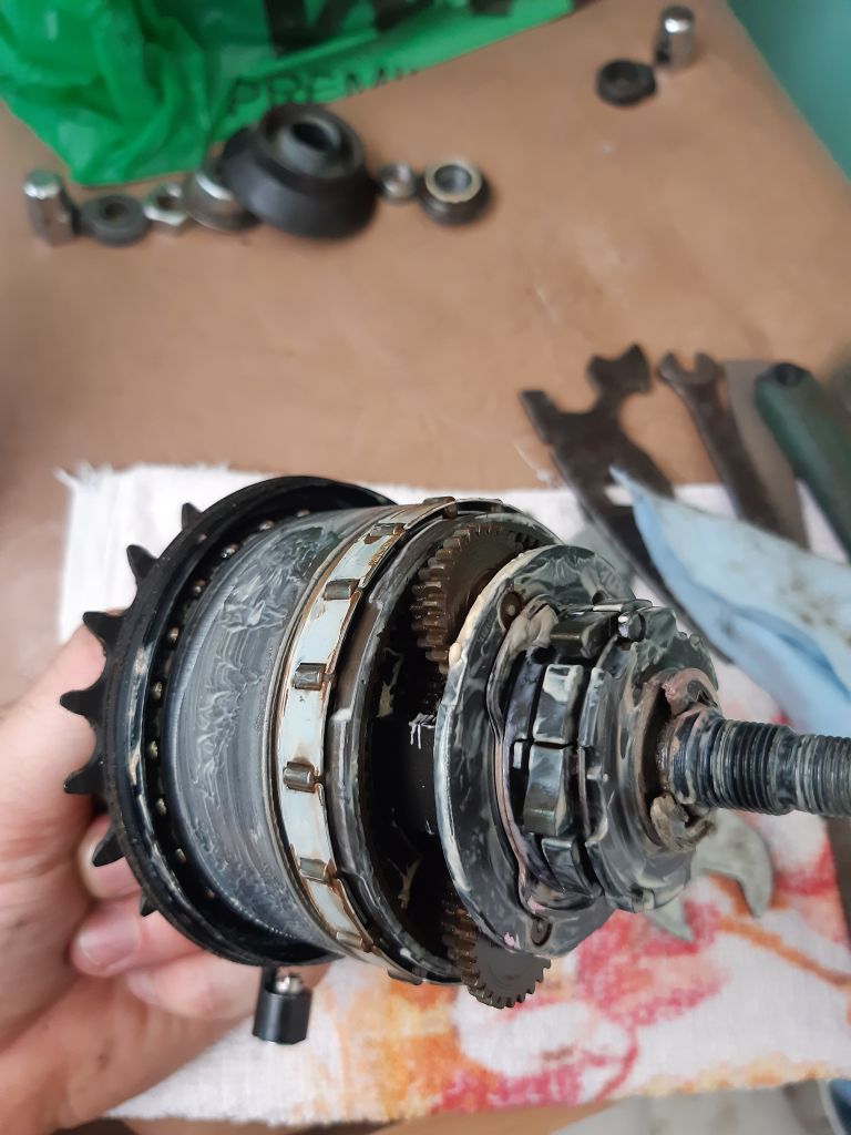 Густая смазка во внутренностях планетарку съест КПД втулки. 3 года смазываю втулки минеральной трансмиссионной и совместимой с ней по маслу консистенткой, в моем случае CASTROL Manial EP и Castrol LMX. По правильному масло бы нагреть, чтобы его вязкость уменьшилась и оно попало во все щели, но не обязательно.