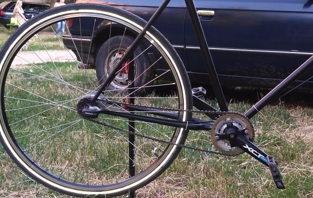 Собственно, почему такой расчёт получился — на планетарке 19 звезда стояла, а у меян из свободных шатунов на тот момент только мтбшная четырёхлапка была и звезда на 38 от сказо4ника, которая мне на мтб нафиг не нужна оказалась. Вот в результате это как-то так выглядит: