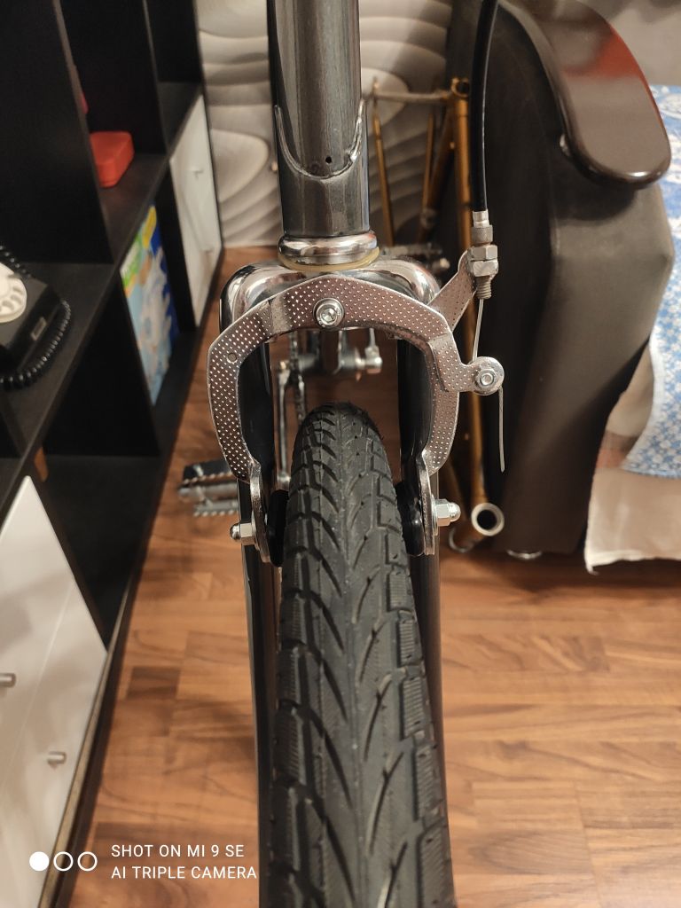 Так как ездить только с задним тормозом мне опасно, а переднего подходящего нет, а ездить хочется — поставил "Салютовский".