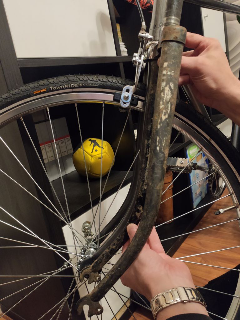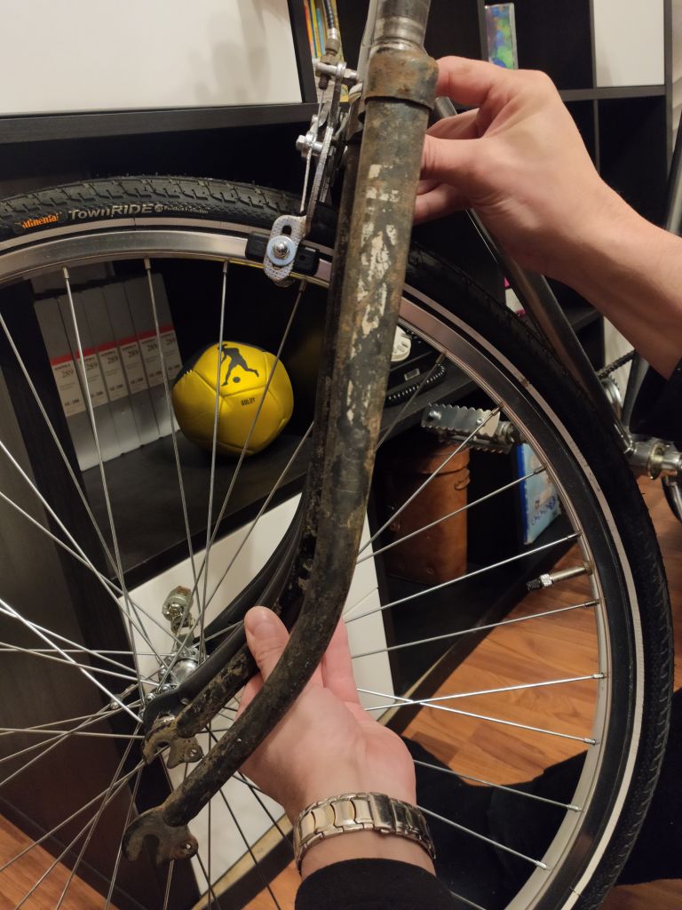 "Турист" конечно перестроечный, но зато система и передний тормоз "спецзаказ". У мужика взял номер телефона, он обещал ещё колеса отдать и седло, за определенное вознаграждение