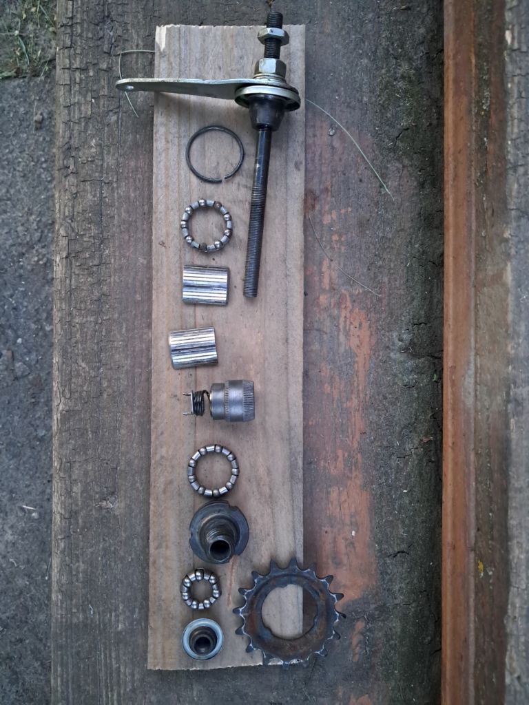 Промивши патрохи, інтуітивно зібрав. Все зібралось до купи. І нарешті питання: Які підшипники там мають стояти. Великі обойми явно не з одного комплекту і мають діаметр 5мм з хвостом. А доріжки розміщені по самому краю деталі... Якось зовсім не надійно...
