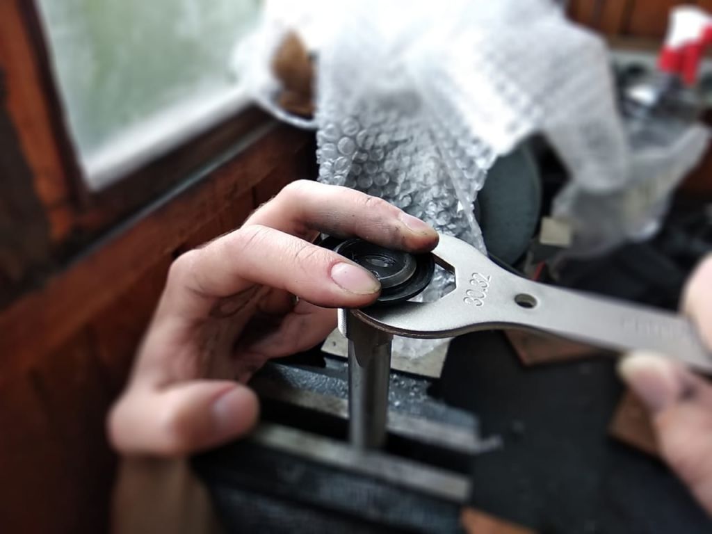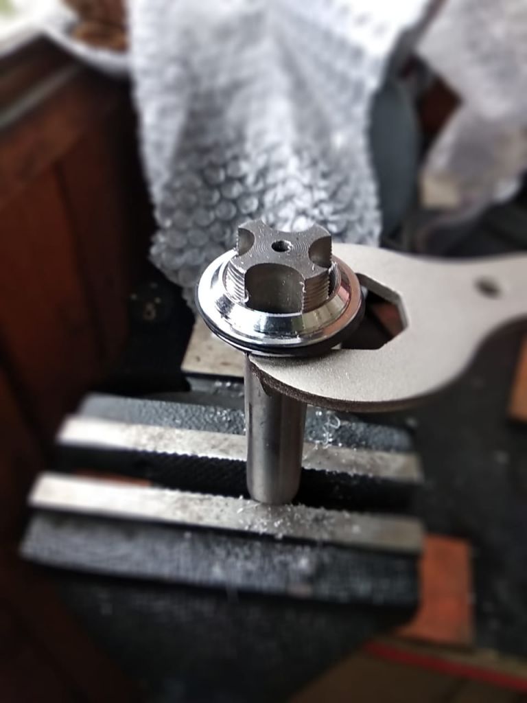 3. Изготовил шайбу-проставку между конусной гайкой и контргайкой (в оригинале её роль выполнял упор под рубашку тормоза)