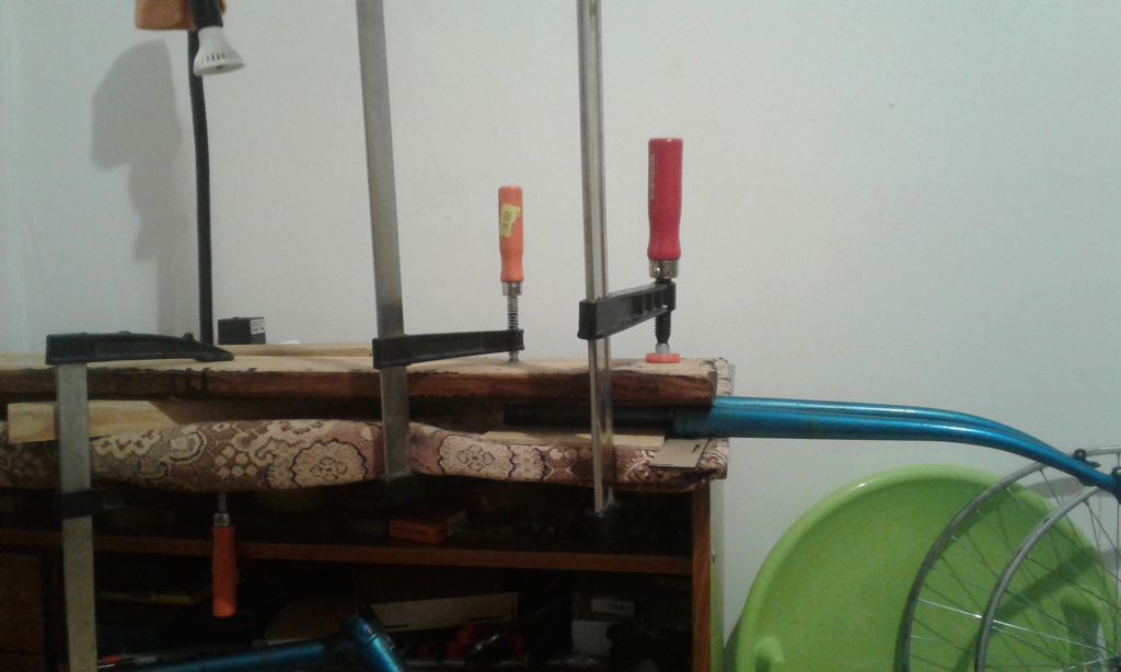 Квартирно-струбцино-силовой способ выравнивания геометрии вилки.