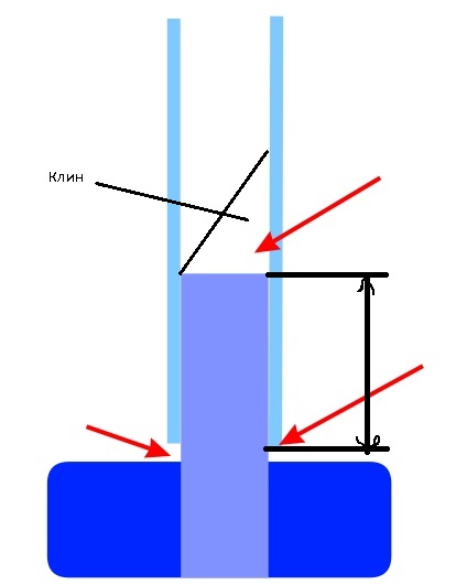 Выше изобразил клин рулевой. Ниже он уже не опустится. А вставлять его в трубу лучше пполностью, иначе — не эстетично.
