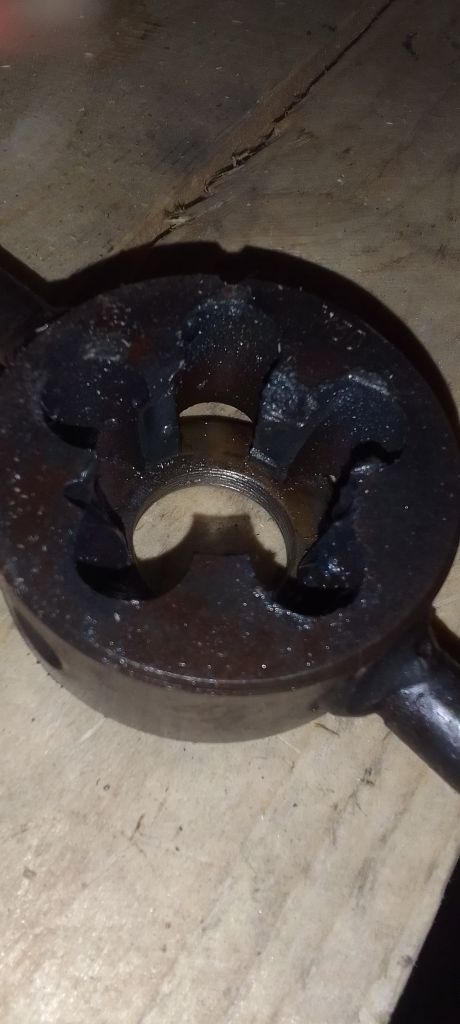 В моем случае пришлось испортить хорошую плашку , но можно сделать и по другому как то... Нарезается медленно и мучительно, звук при процессе просто невыносимый, нужнв мощная мускулатура весьма), более двух оборотов делать не стоит, сломаете шток вполне себе, потом назад, масло лить обязательно и в большом количестве... Верхушку штока обязательно подточить под конус.... Это крайний вариант, если плашку никак не достать.... Спасибо советским инженерам за качественную сталь и термообработку чашек!