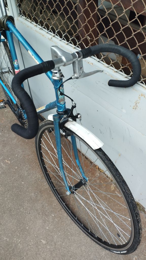 Такой руль на туристе мне показался очень удобным. При езде в городе он гораздо удобнее узкого туристовского барана, да и тормозные ручки всегда под рукой. Автор хочет построить из этого туриста сити-байк сингл-спид и этот руль будет как нельзя кстати для него.