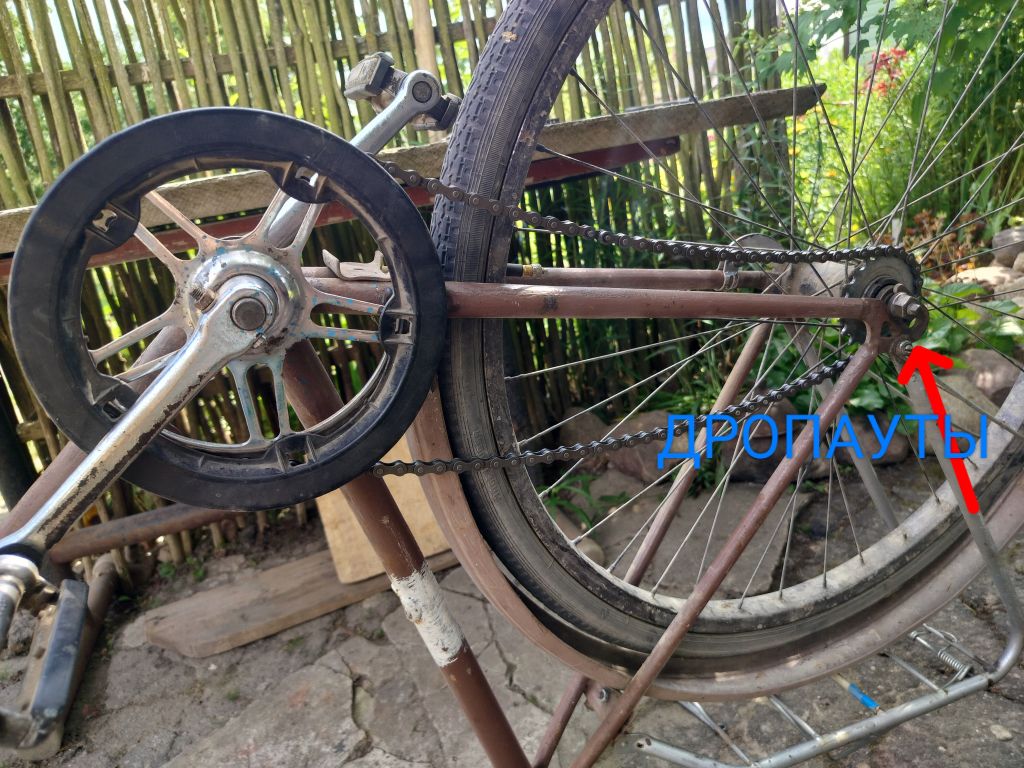 Вот буквально на днях у Камы своей складной убрал два звена цепи, но не из-за износа. Просто до того раньше поменял переднюю звезду пермскую (48 зубьев) на минскую (46 зубьев), и при этом ось заднего колеса стала упираться в упоры (задняя звезда 16 зубая при этом, и 15-и зубую уже не поставить, цепь провисать будет). А два звена убрал, задняя ось со звездой 16 зубьев чуть ли не стала вылезать из дропов. Заменил её на 15 зубьев, и стало вполне нормально.