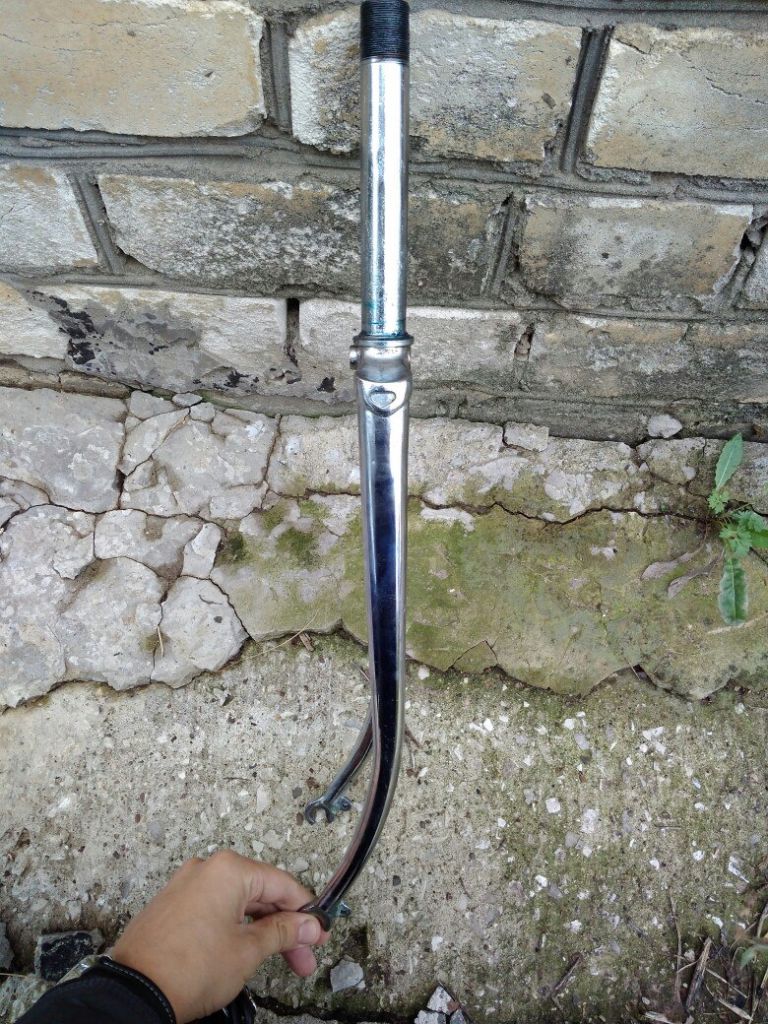 Ещё вилка понравилась, хромированная, красиво выглядит, перья ровные, левый дроп только завернут немного. Но весьма исцарапанная, надо как то будет придумать, что бы полирнуть хром.