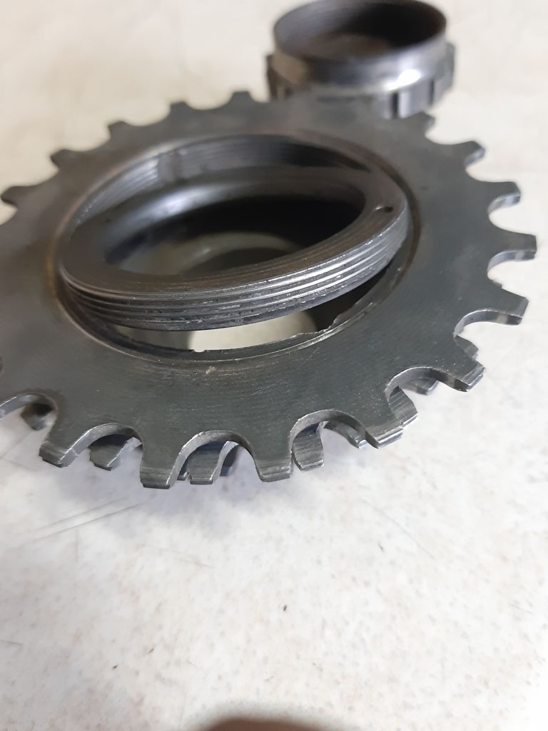 Резьба чашки трещётки М51х1 левая. Что ещё не обычно: маленькие звёзды на правой резьбе, большие на левой.
