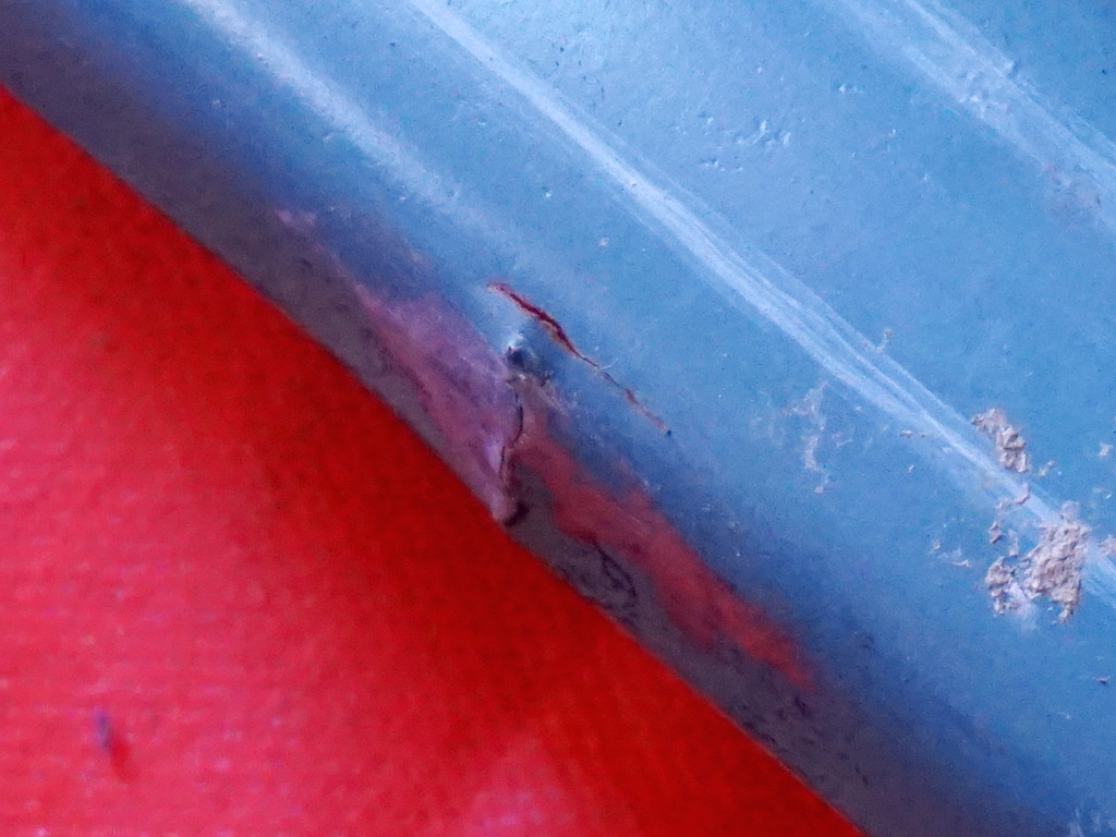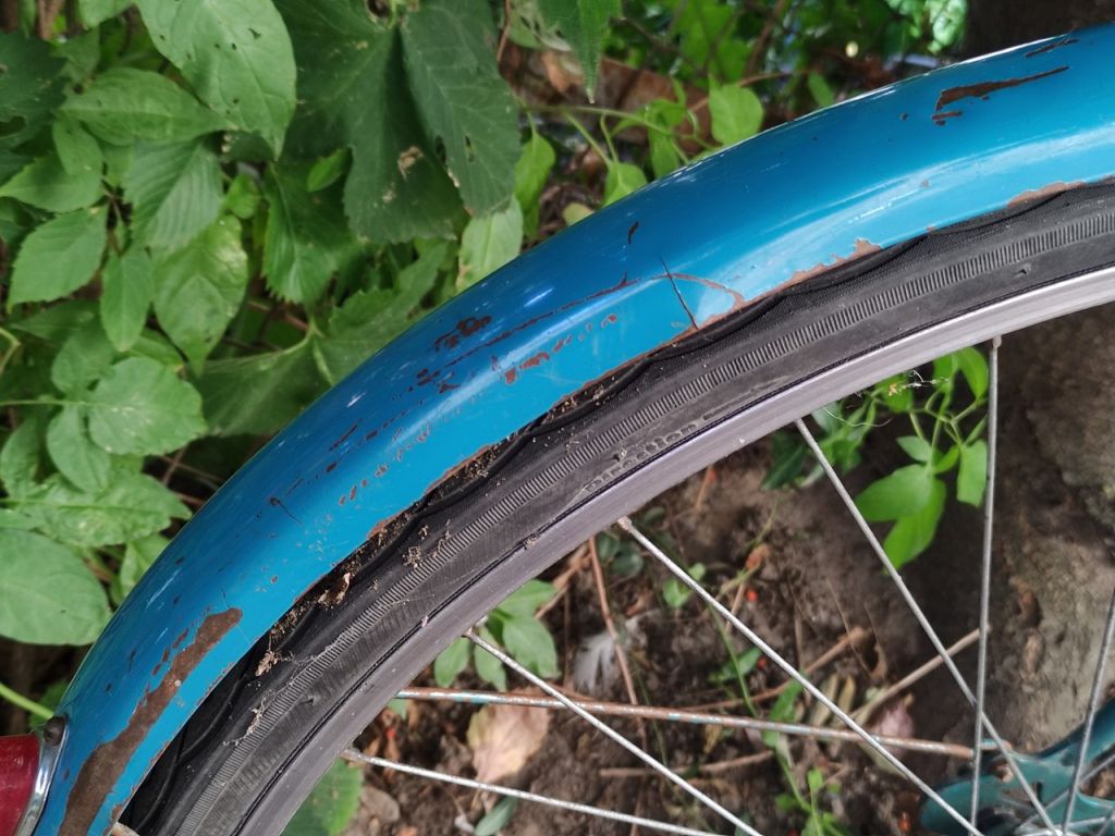 На первом крыле не было ощутимых дефектов в местах растрескивания. На втором крыле были замятия, которые часто бывают если велосипед ставят на заднее колесо или сминают крыло, сдавая назад. Я выстучал их молотком, но вскоре они снова появились (возможно и от неаккуратного использования) — а вслед за ними начали расти и трещины. Но это крыло вообще сильно повидало видов и выглядело откровенно черметно, в отличие от первого.