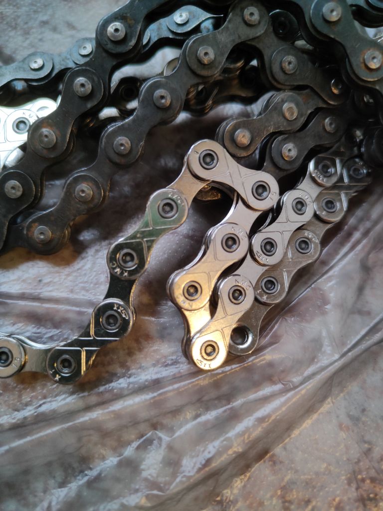 Все эти KMC 3/32″ были поначалу на 4–5 звёзд, потом вдруг стали сингловые. В вашем фрикционном случае, возможно, будет работать.