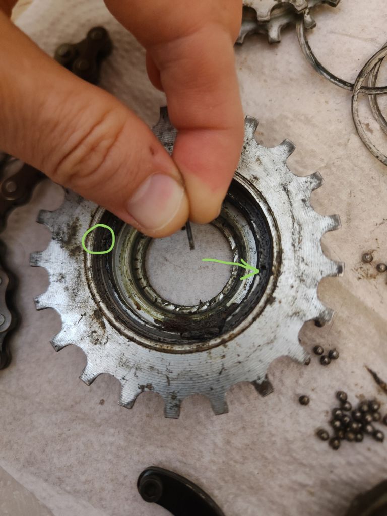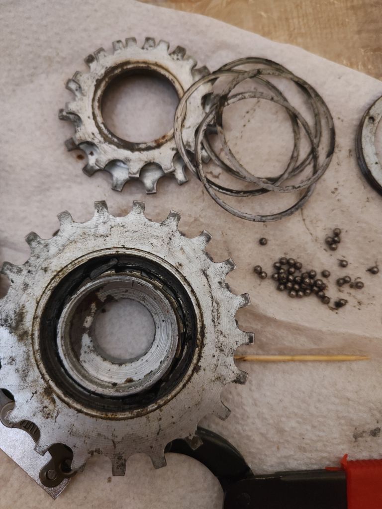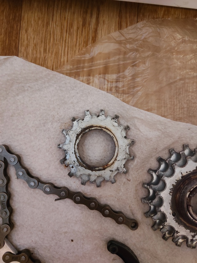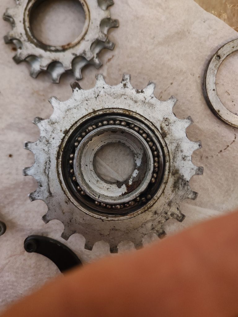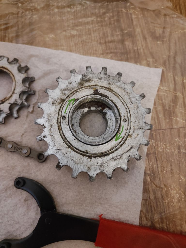 Исторический момент, обслужил свою первую трещетку. Которую я пытался снять со втулки очень долго. Чтоб полегче было добрать до крепления, удалось снять 2 самые маленькие звездочки (это одна деталь), откручивается против часовой стрелки двумя хлыстами. Хотя в целом не обязательно и откручивать, но так почистить можно.