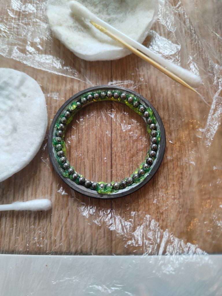 Вынимаем деталь с зубчиками и из под нее высыпается еще 31 шарик по моим подсчетам.