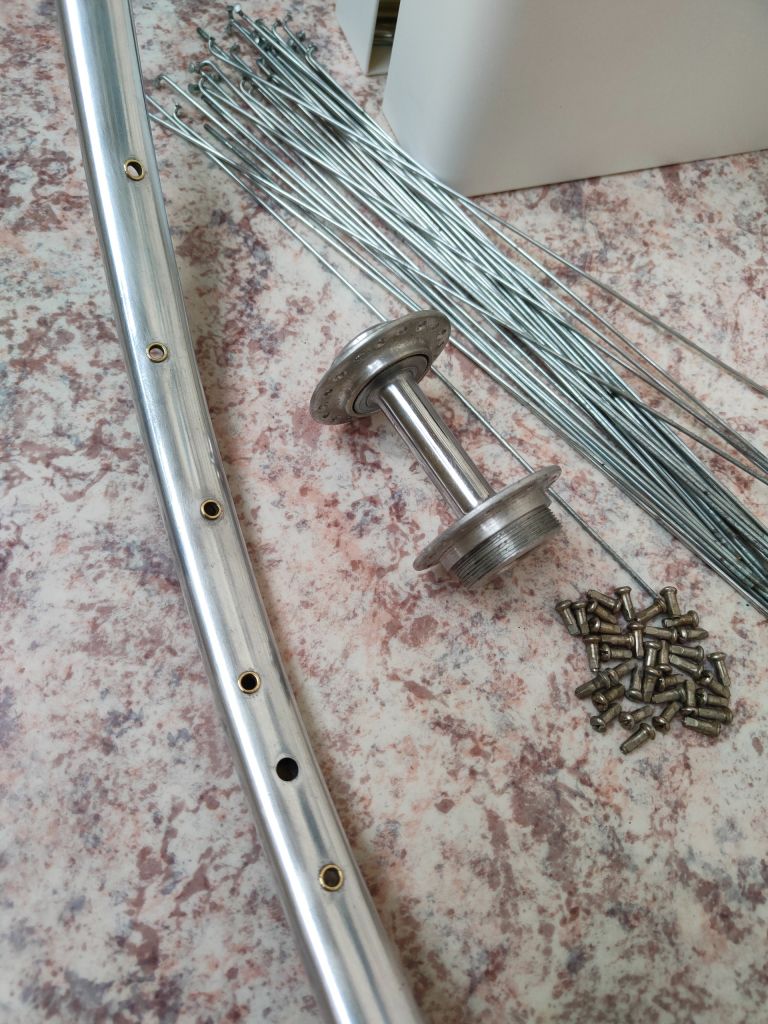 И вчера заспицевал колесо, чтоб хоть немножко приближаться к финалу сборки. Спицы не натягивал, отнесу в сервис.