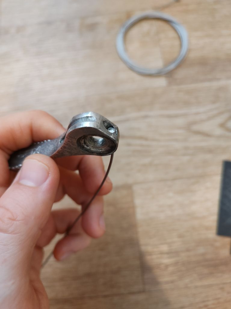 Решил ещё одну проблему, что шишечка от современного троса слишком большая и не подходит в место где должна сидеть. Все решилось подпиливанием нождачкой бумагой. Наверное каким нибудь наждачным кругом вообще за 5 секунд можно было сделать. Теперь все как родное.
