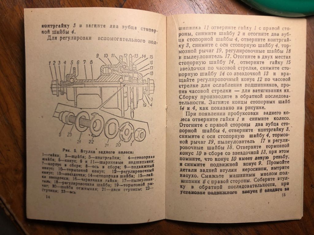 Потом поменял застывший заводской тавот в передней втулке на совремкнную смазку, промыл корпус втулки, шарики, конусы и ось. Отрегулировал.