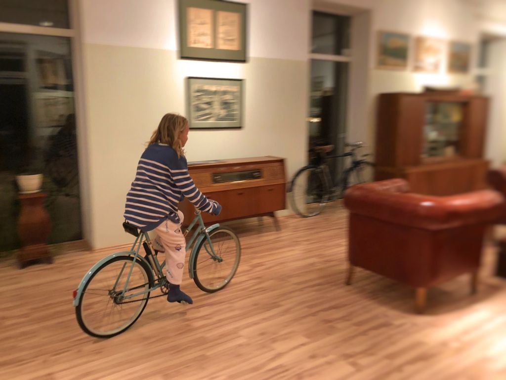 Как я понял, непривычнее всего современному ребёнку тонкие колёса, вероятно, придающие езде некую мнимую ненадёжность. Дело привычки, после толстенных колёс современного велосипеда…
