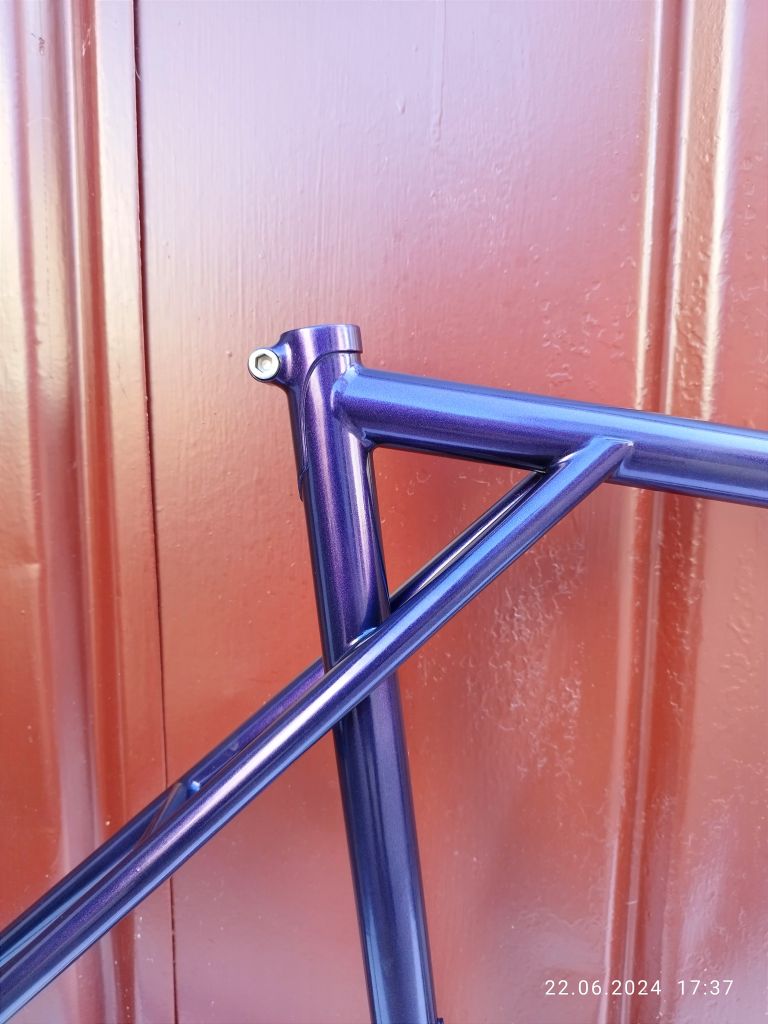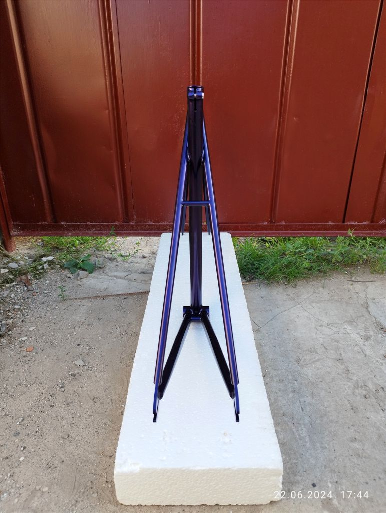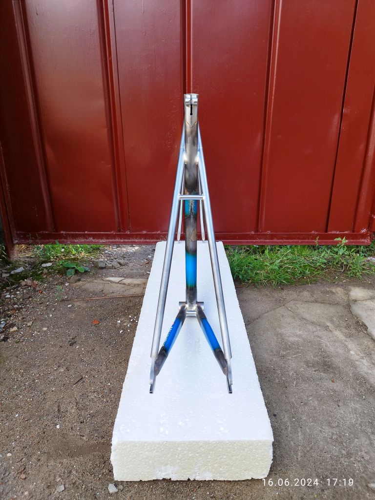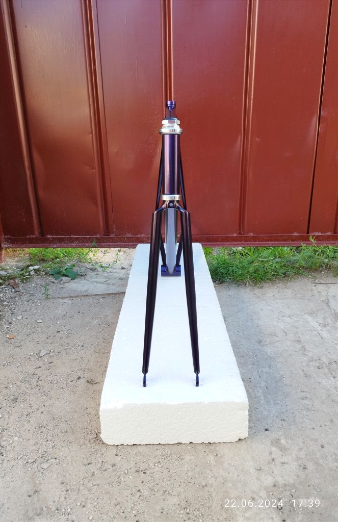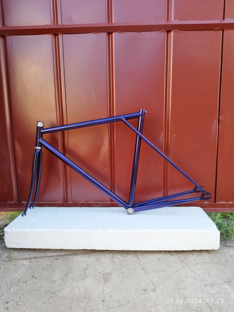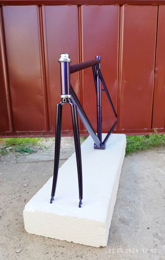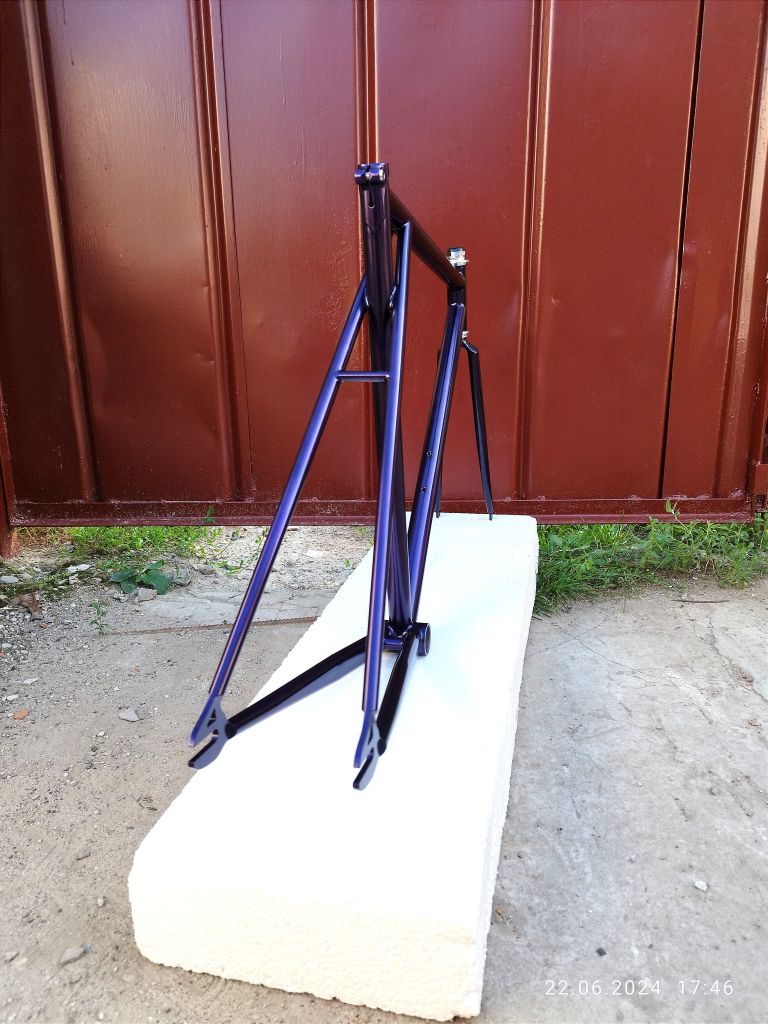 Забрал раму и вилку после покраски, поочищал их от краски в местах где она не нужна, спаял на вилку под нижний конус проставочное кольцо, пролил раму и вилку изнутри маслом и собрал фреймсет.