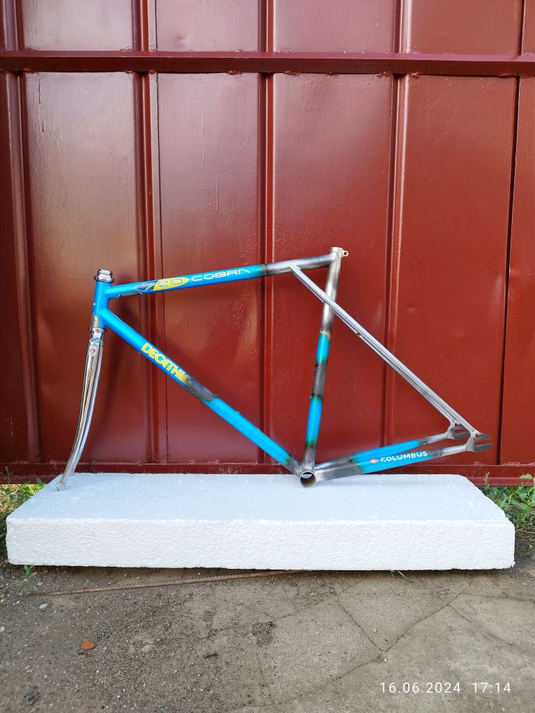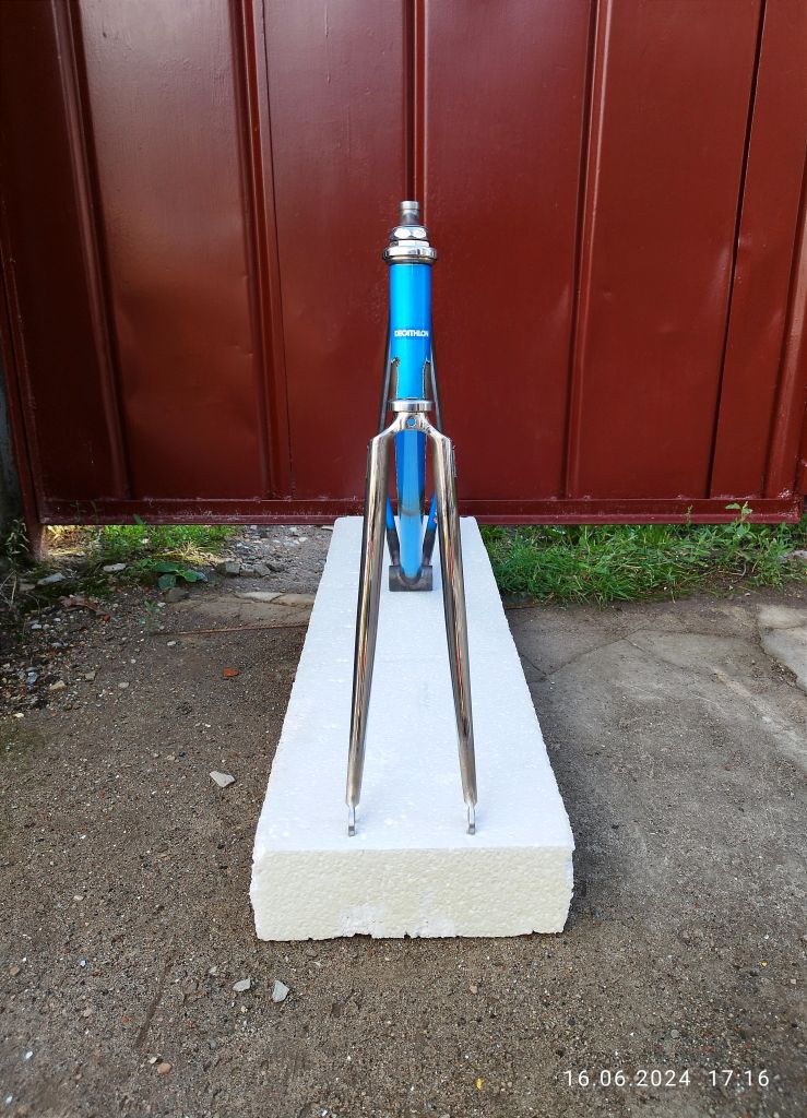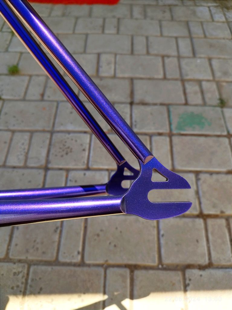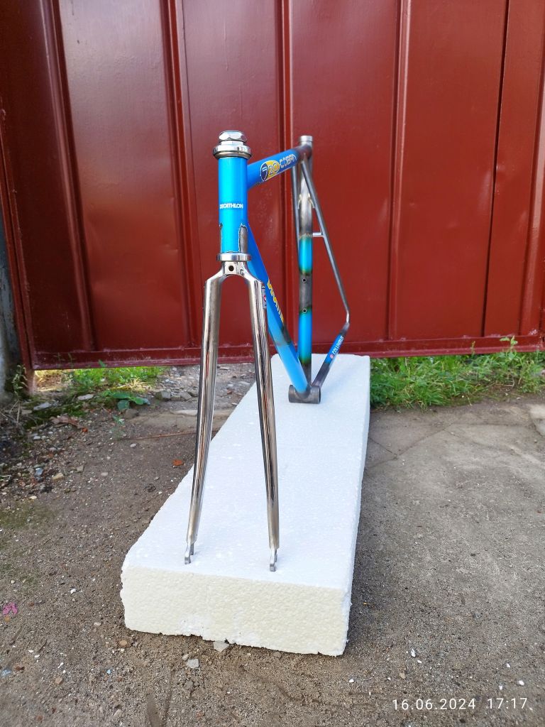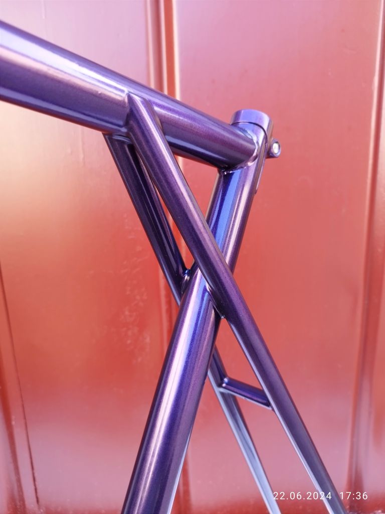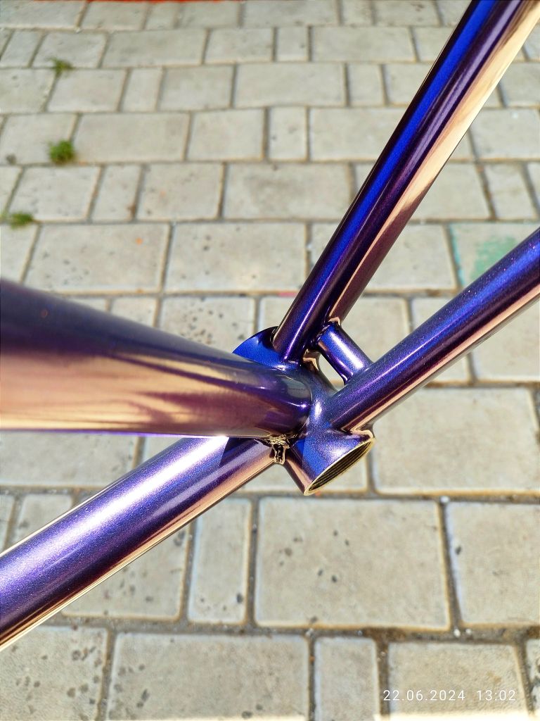 Забрал раму и вилку после покраски, поочищал их от краски в местах где она не нужна, спаял на вилку под нижний конус проставочное кольцо, пролил раму и вилку изнутри маслом и собрал фреймсет.