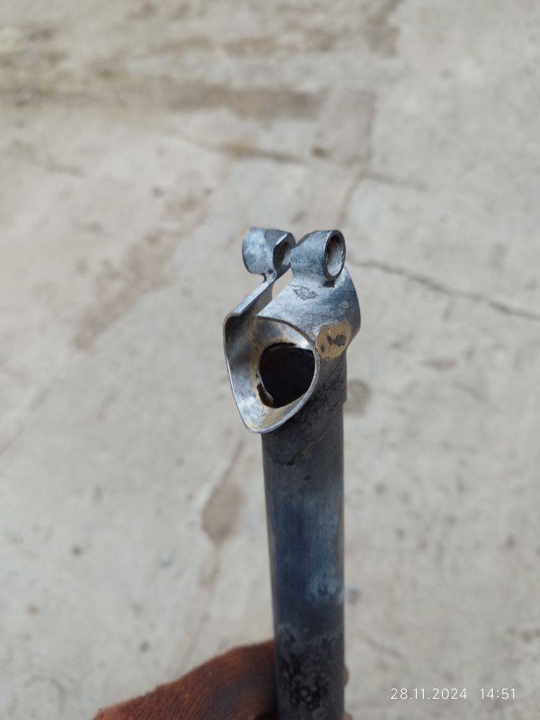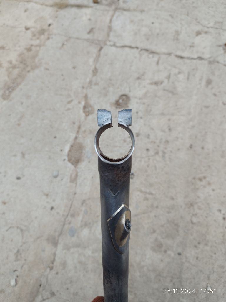 Сточил старые накладки и впаял новые и готов был уже заниматься задним треугольником, но сразу под узлом на подседельной была обнаружена микротрещина. И было принято решение: была рамка 58-й ростовки, станет 53-й, благо верхняя труба короткая, 54 см