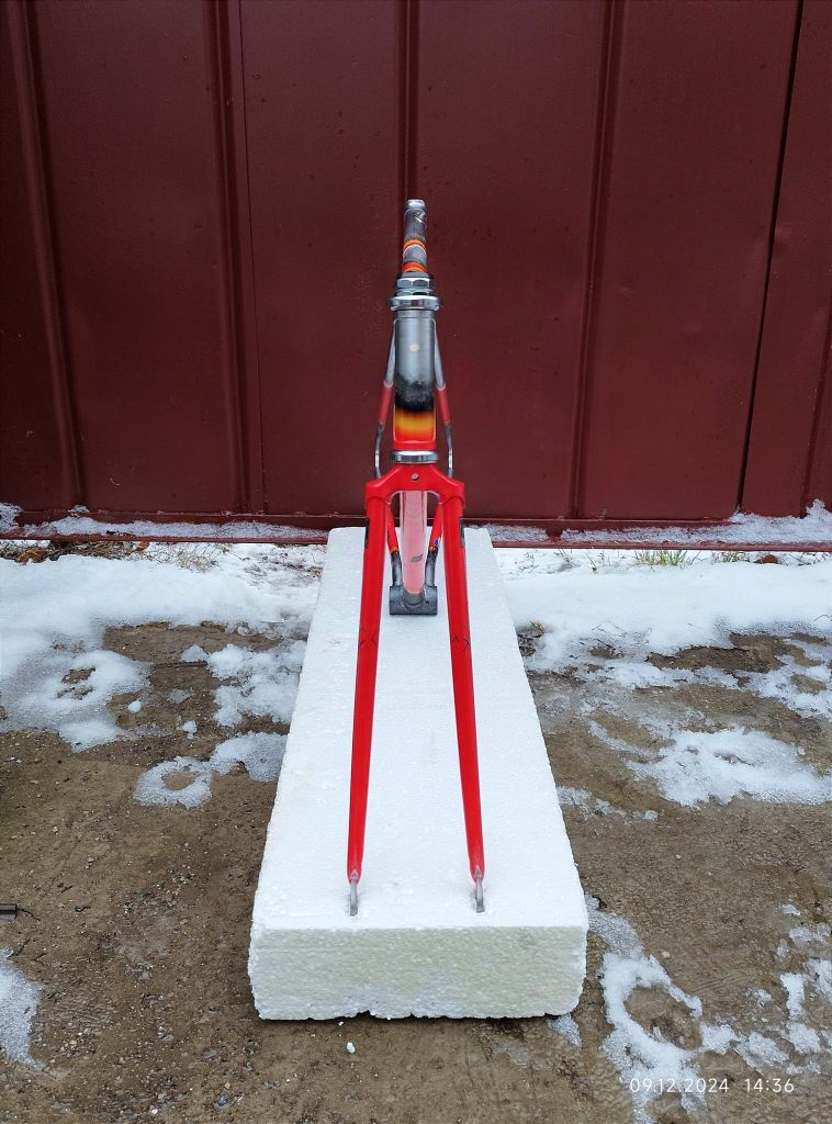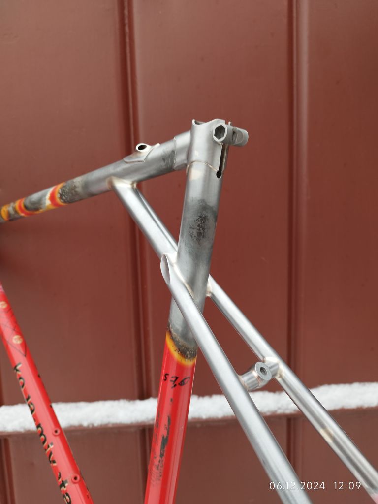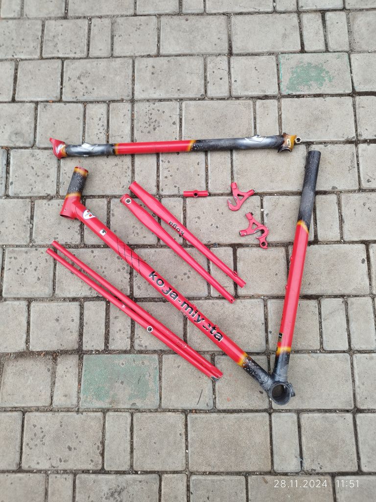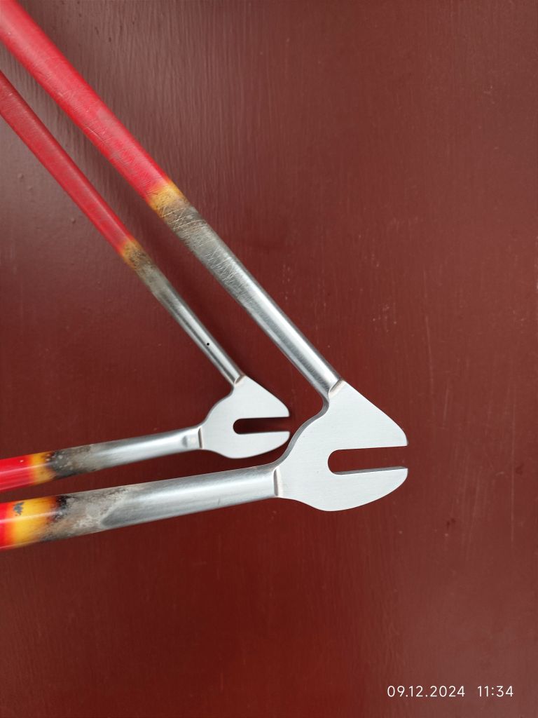 У вилочки был уменьшен вылет, переделаны дропауты. У рамы частично передний треугольник и полностью задний (укорочена база, поднята каретка, увеличены углы, сделан новый дизайн), запаяны несколько вмятин и сделана новая проводка заднего тормоза.