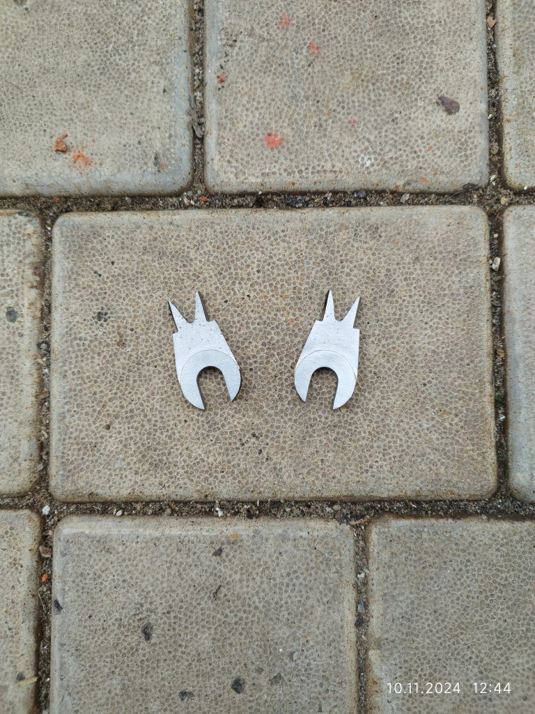 Далее при вычухивании вскрылись детали некрасивой пайки, поэтому всё залил сверху ещё и серебром 56%. Потом всё опять вычухал и проточил посадочное место под нижний конус. Вот такой получилась вилочка