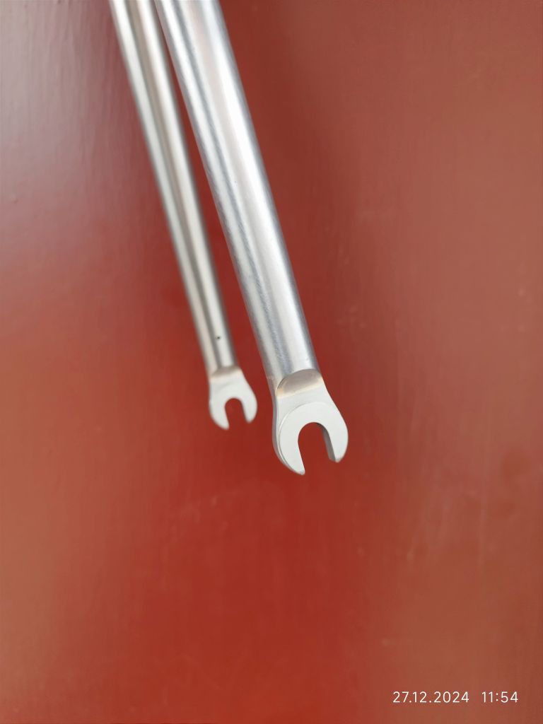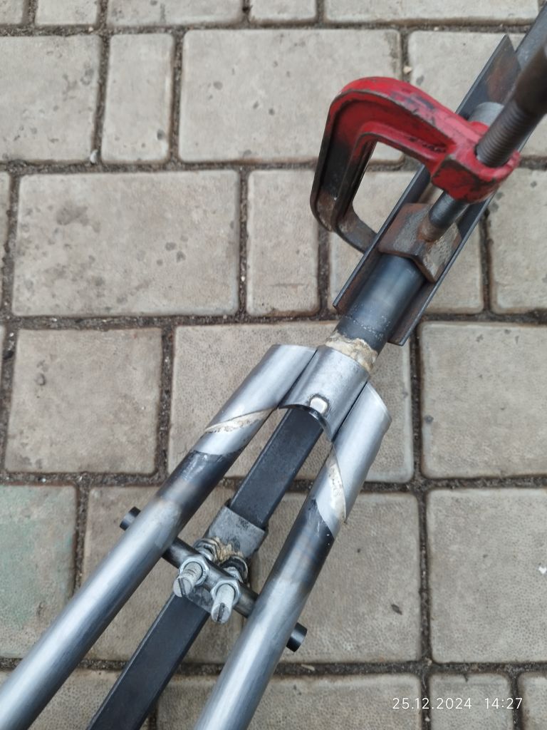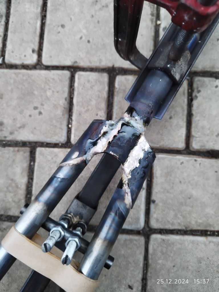 Євгеній76, на вилке написано HM-2 ( special manganese steel). И марганец там есть. Перья вилки надо было немного выгнуть назад и эта процедура происходила с приложением очень большой силы, даже больше чем со Стартоном.