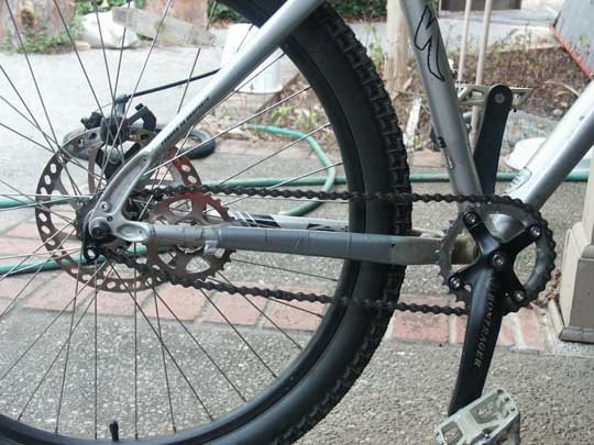 Кстати, идея Ивана может позволить отказаться и от сопли-натяжителя, и от "моего" дополнительного куска цепи с замком. Неточности сгладятся перемещением задней оси в стандартных дропах.