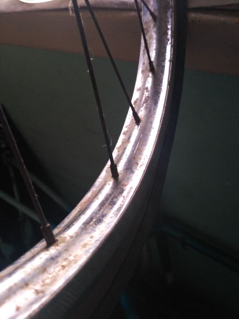 Колесо на похожем  нержавеющем ободе приехало мне от Бегущей Черепахиimg/thank  , покрутил померял, расспицевал и отдал обод хорошему человеку Анатолию, он собирался делать велопроект соответствующий. А мне куда 25*630 было девать. Разве отполировать и на стенку повесить.