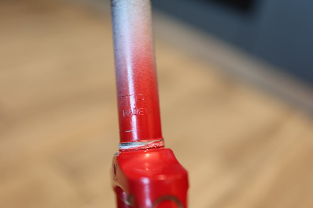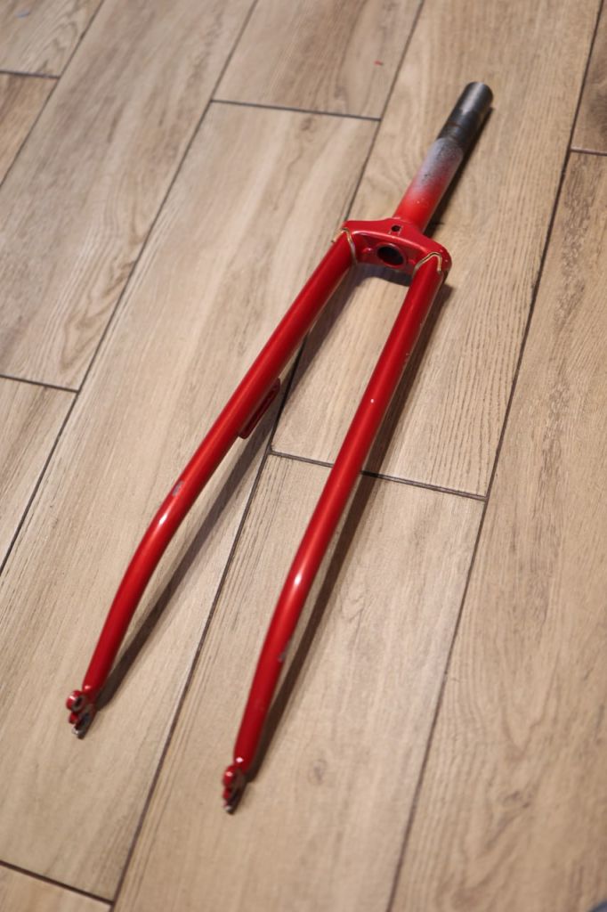 По случаю на замену ей приобрел на барахолке нечто родом из страны восходящего солнца, с гордым клеймом "tange tf" на дропах и "made in japan" на штоке. Вилка судя по виду лет на пять-семь старше моего фреймсета., я похожую по форме короны встречал на хромолевом злом туринге с рамой миксте марки Koga Miyata.