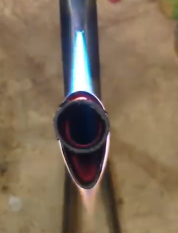 Немного баловался при пайке, пламя красиво огибает каплевидную трубу.