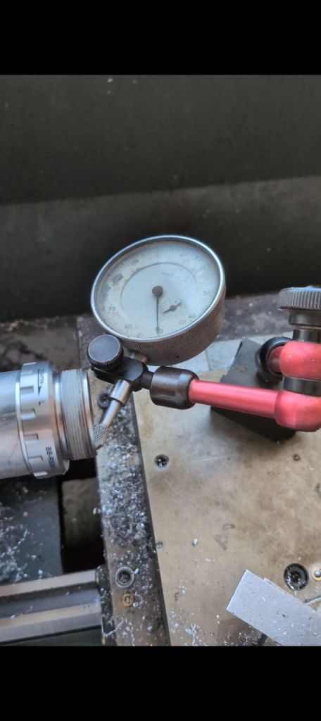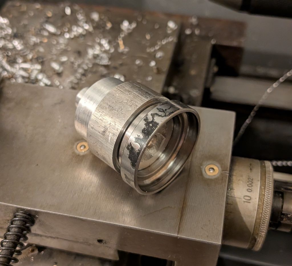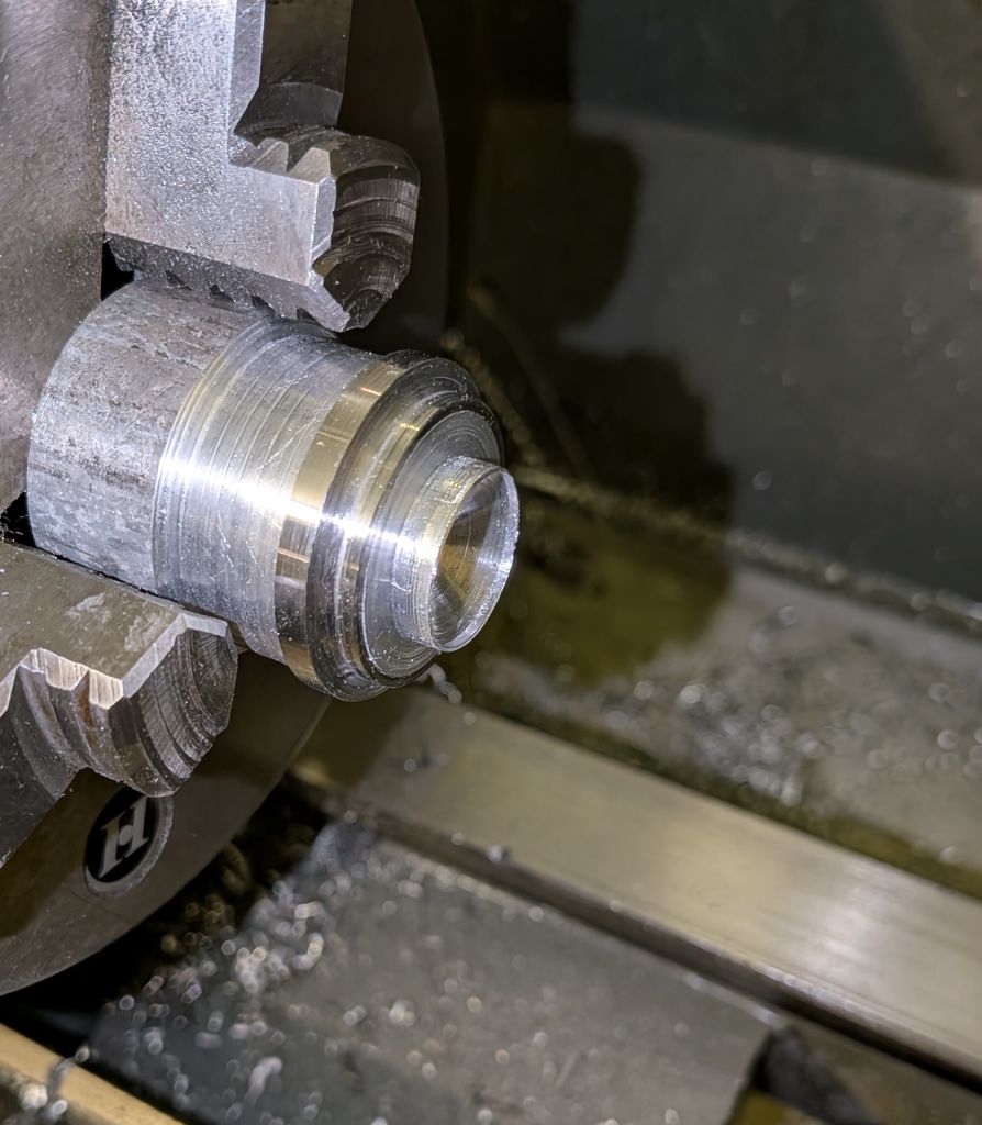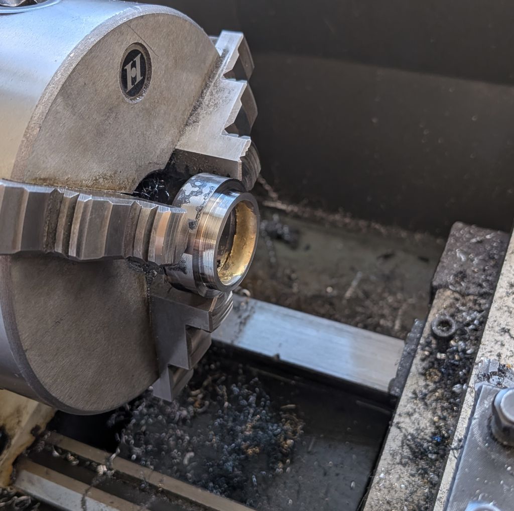 Закрепив чашку за посадку подшипника, я убедился, что противоположная сторона не соосна. Это было ожидаемо, так что проточил в размер втулки.