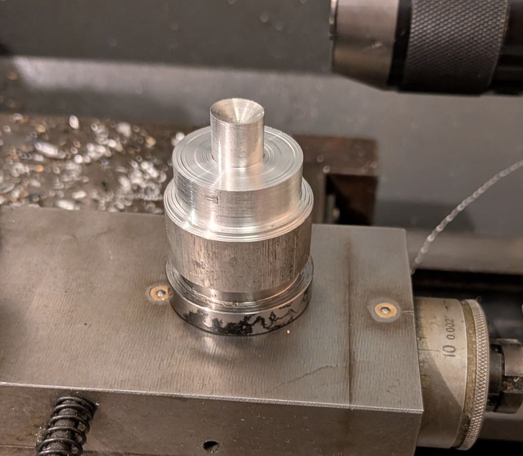 После отпуска будущий конус для обработки надевается на проточенный кругляк плотной посадкой.