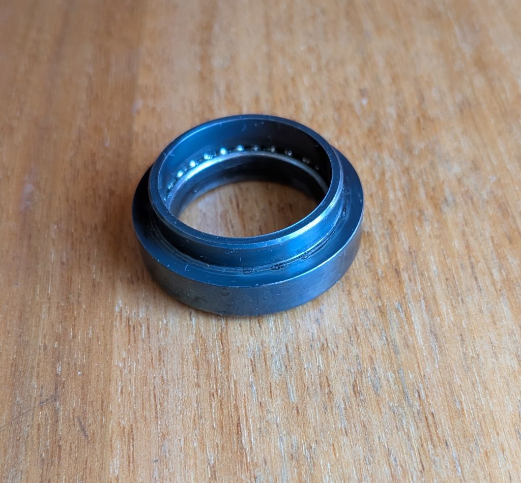 Изначально нижняя чашка рулевой была от стандартной дюймовой рулевой. Но они все диаметром минимум 42мм, а часто даже больше. Мне это не нравилось, поэтому пришлось делать свою. Чтобы добиться малых размеров, буду использовать шарики меньшего диаметра (3мм против стандартных 4мм) и посадку под конус 25,5мм против стандартных 26,4мм (ISO) или 27мм (JIS).