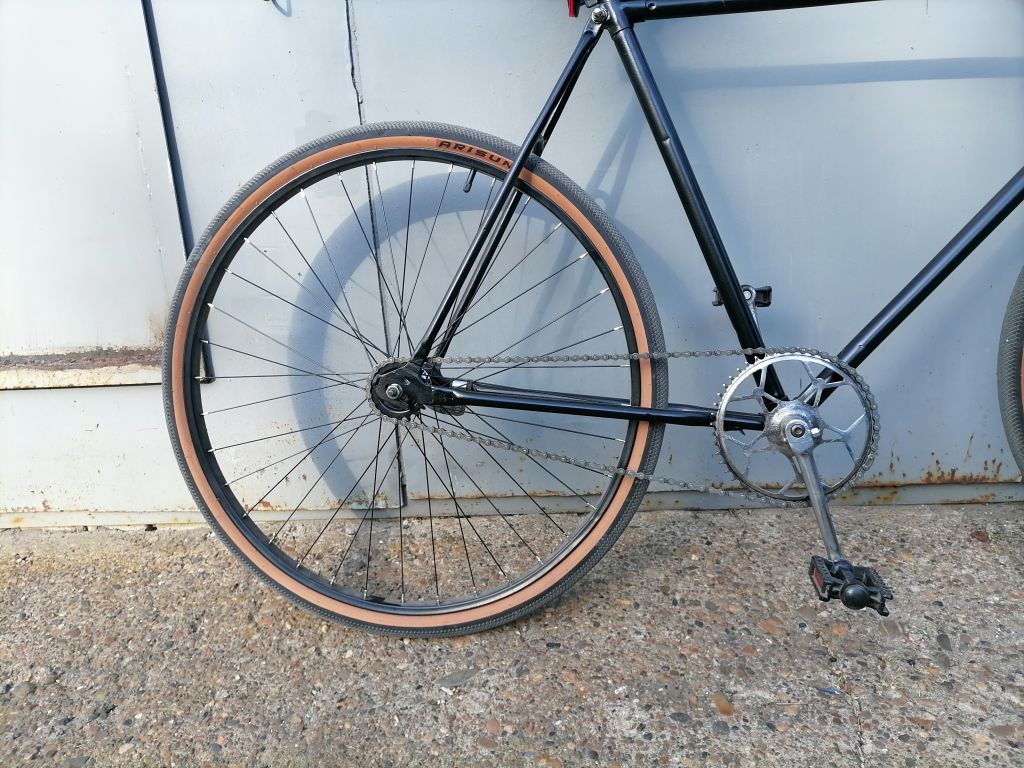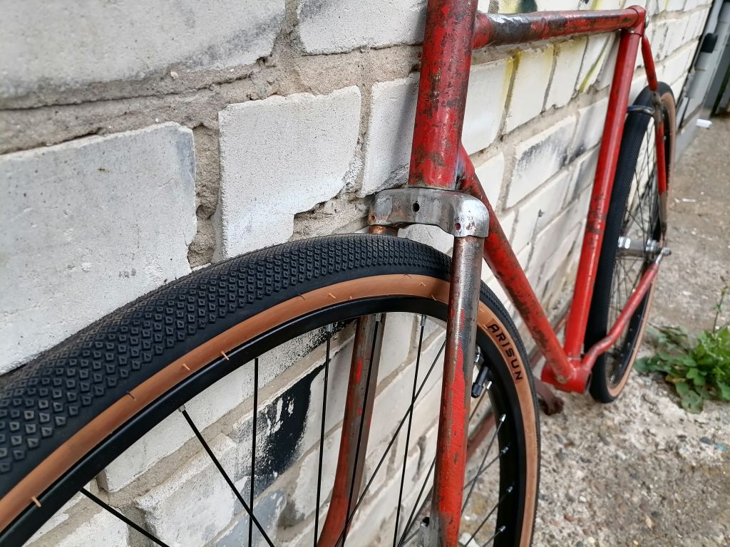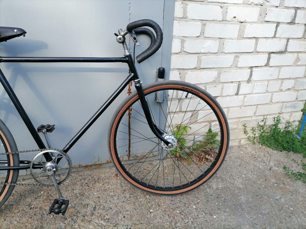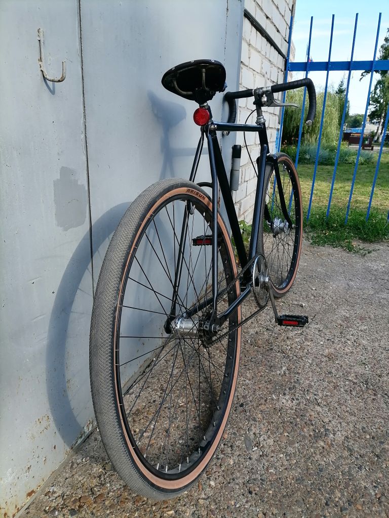 Оба колеса собраны на стальных спицах в 3 креста. Камеры обычные, бутиловые, покрышки Arisun 622х40, 60 tpi. —